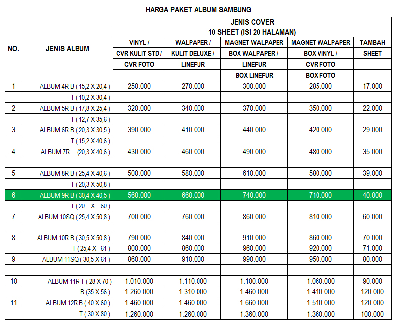 Berikut pricelist album kolase sambung terbaru: